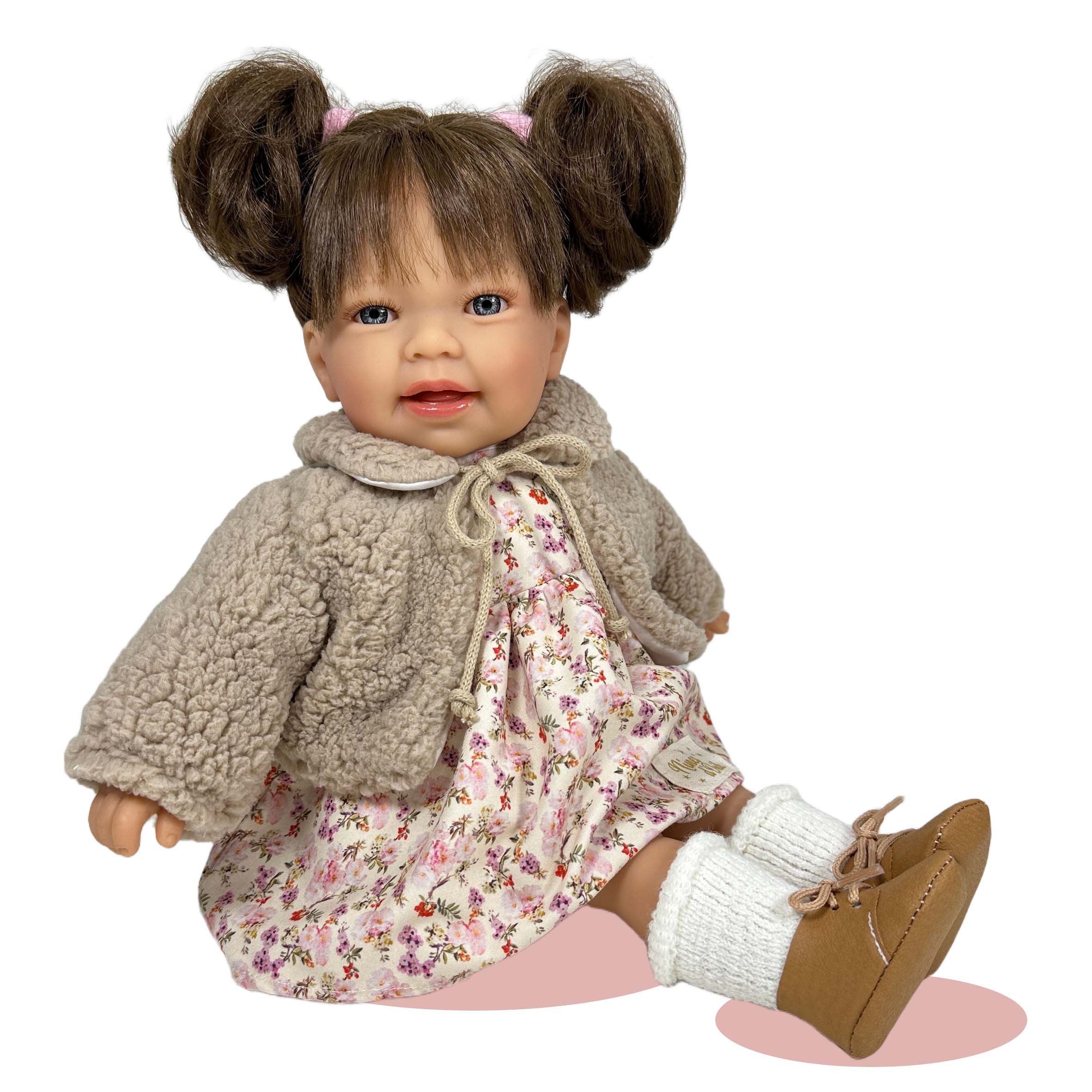 Doris 40 cm magas vanília illatú, mosolygós kislány. Barna hajának szépsége és apró részletekben gazdag megjelenése teszi őt különlegessé. Doris haja két kis kontyba van kötve, amelyek játékosan emelik ki a báját. Ruhatára sem marad el a részletekben: virágmintás szoknyát visel, barna, puha kis kabáttal, fehér zoknival és divatos kis cipővel. Doris arcának élethűsége lenyűgöző, tengerkék szemének és bájos mosolyának egy gyermek sem tud ellenállni. Minden apró részlet hozzájárul ahhoz, hogy ez a játék baba valóban különleges legyen.