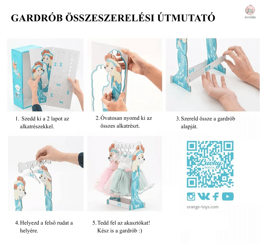 A csomaghoz tartozó fogas lehetővé teszi a ruha felakasztását, ezáltal Yoyo még rendezettebb és élethűbb megjelenést kap. A Lucky Doggy kollekció további darabjaival pedig Yoyo megjelenése bármikor új stílust kaphat, így a játékélmény még változatosabbá válik.