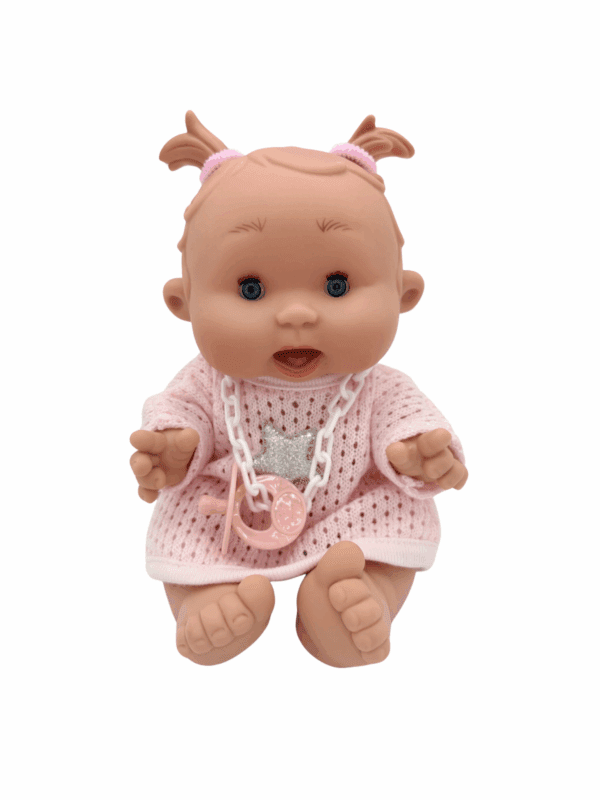 Milla egy 26 cm magas, vinyl testű, vaníliaillatú, bájos játékbaba, aki kedves társa lehet minden gyermeknek. Teste kiváló minőségű vinylből készült, amely tartós és könnyen tisztítható. Az élethű részletek és a finom kidolgozás mindenkit elvarázsolnak. A babának mozgatható karjai és lábai vannak, így könnyen öltöztethető és pozicionálható. Szemei lecsukódnak, és hosszú szempillák díszítik. Milla csinos, rózsaszín kötött ruhában érkezik új kis barátjához. Aprólékosan megformált pofikája mosolyt csal mindenki arcára. Az édes vaníliaillat kellemes hangulatot teremt minden játék során. Ez a játékbaba ideális társ a gyermekek számára. Kiváló minőségének és részletgazdag kidolgozásának köszönhetően hosszú évekig tartó játékélményt nyújt.